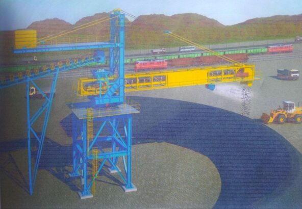 Производительность машины составляет 4000т/ч, угол поворота – 190°, емкость формируемого склада – 70000т.